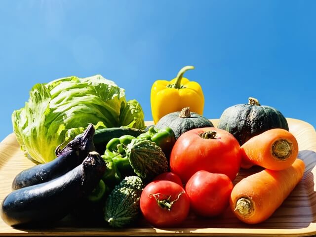 - 野菜:トマト、キュウリ、ナス、ピーマン、トウモロコシ、ゴーヤ